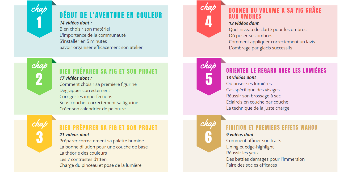 Une formation complète pour en finir avec les figurines grises et prendre du plaisir en maîtrisant sa peinture, grâce à des cours vidéos structurés et un accompagnement personnel par un peintre professionnel !